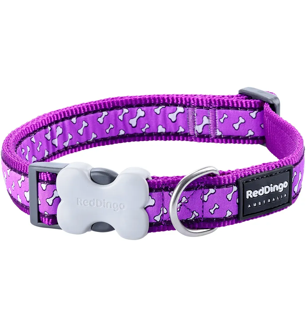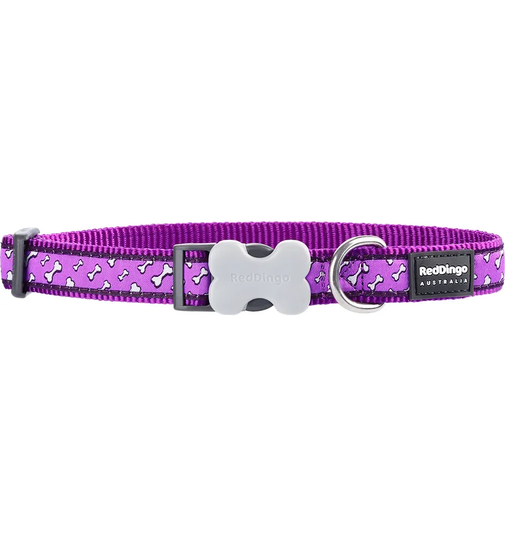 Kaelarihm koerale, disainmustriga Flying Bones Purple (Red Dingo)