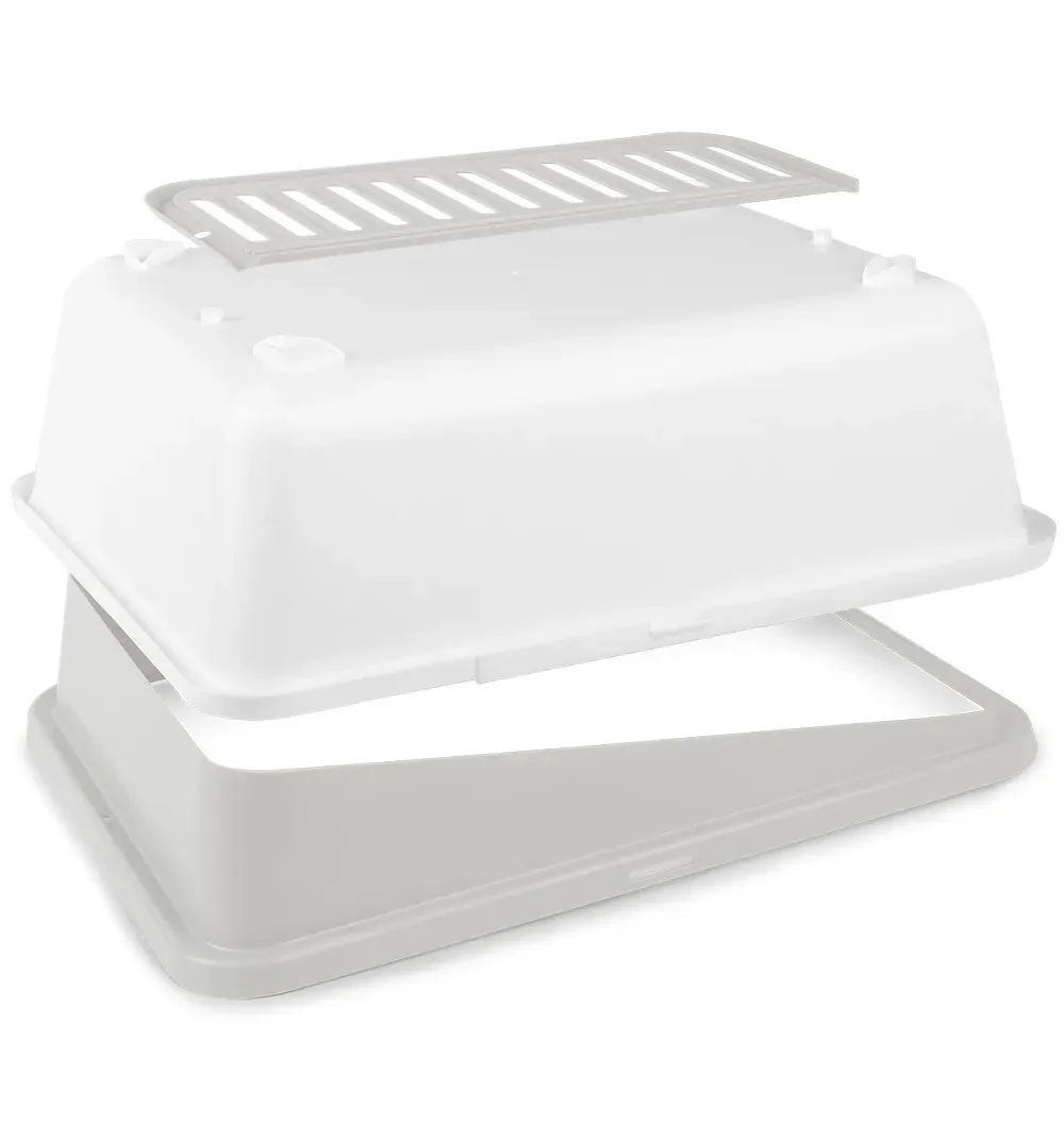 Kõrge taga- ja külgäär vähendavad kassiliiva sattumist põrandale.