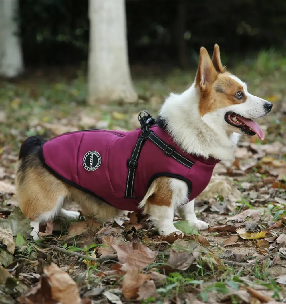 Soe koera talvejope külgeõmmeldud traksidega.