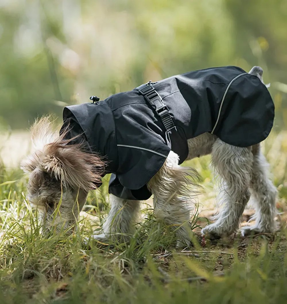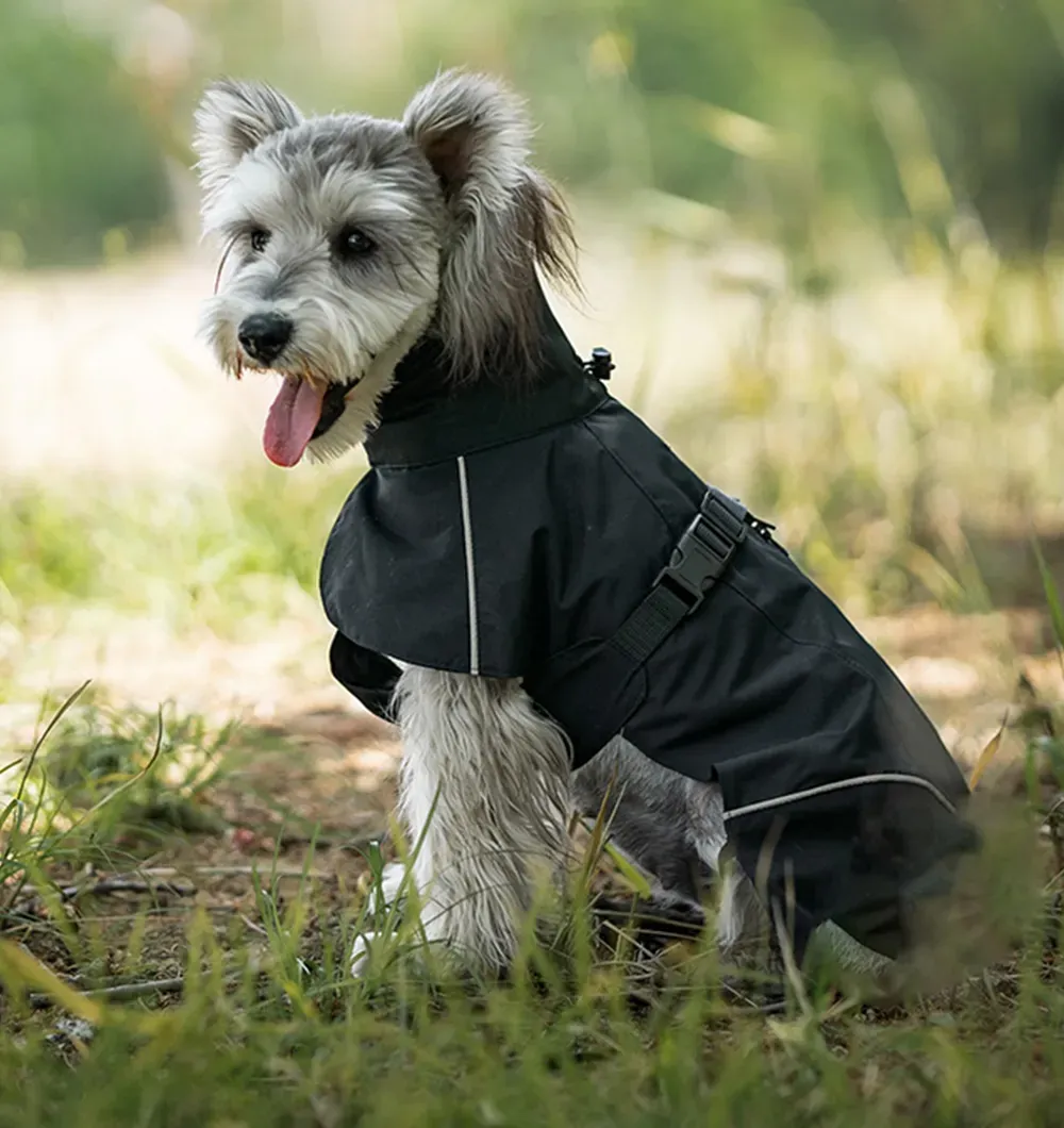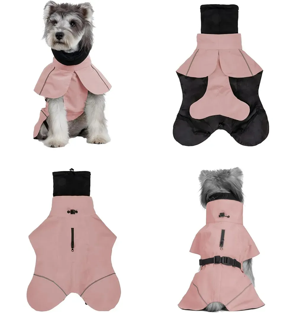- Kõrge, torusalliga krae hoiab koera kaela ja pea kuivana.