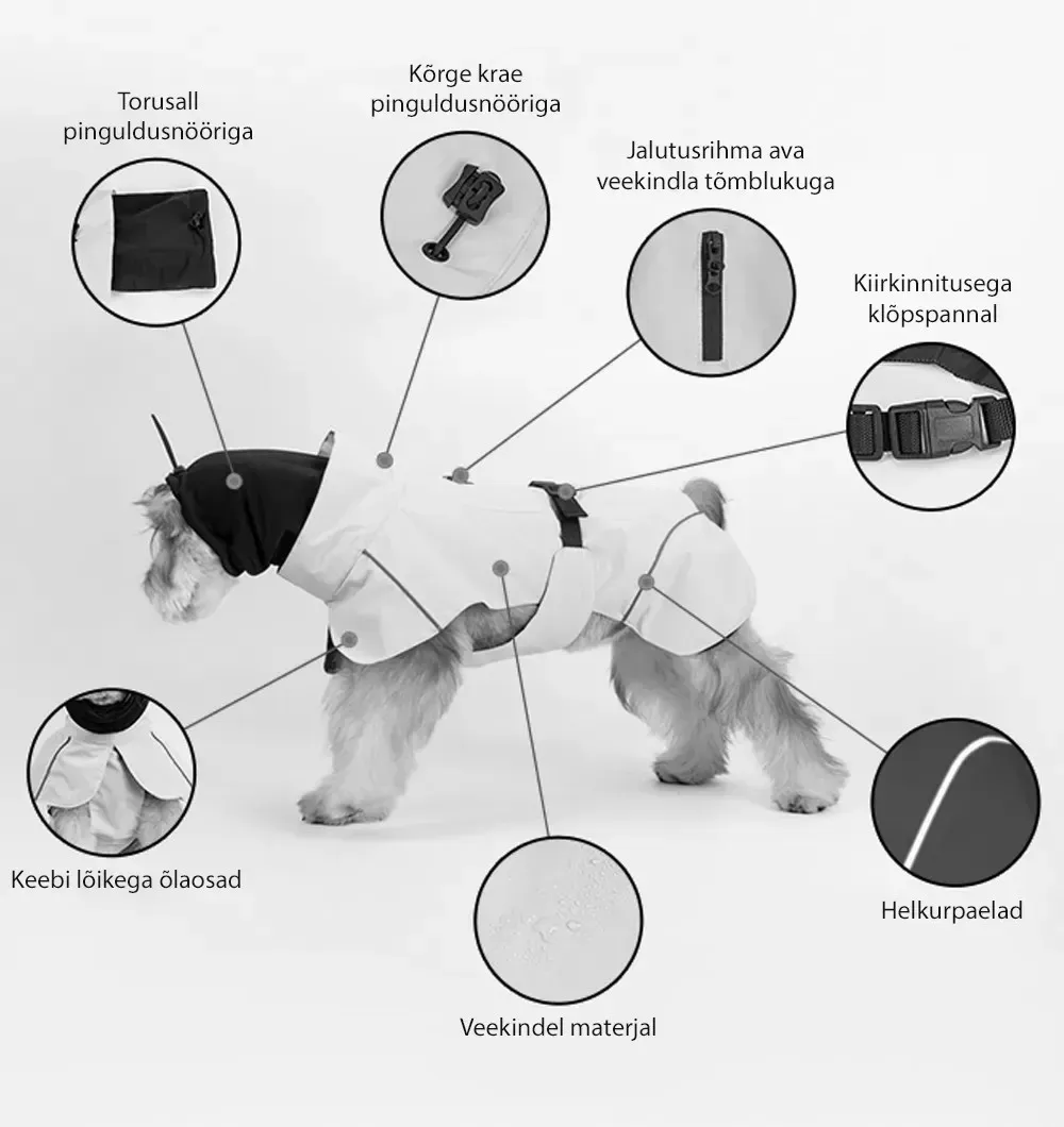 - Koera vihmajope, mis on disainitud kaitsma koera vihma ja niiskuse eest.