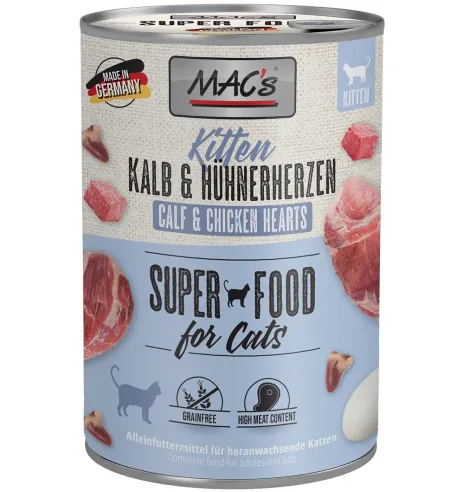 MAC's konserv kassipojale VASIKALIHA ja KANASÜDAMETEGA teraviljavaba (Superfood MACs Kitten Veal & Chicken Hearts)