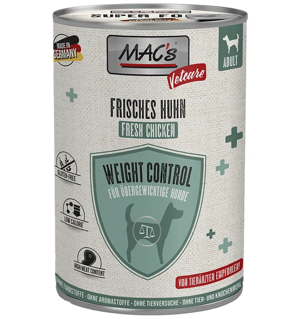 Koerte ülekaal võib tekkida mitmel põhjusel, sarnaselt inimestega. MAC’s Weight Control toetab koera kaalulangust. Toidus sisalduv tselluloos aitab seedimist reguleerida ja tagab pikaajalise täiskõhutunde.