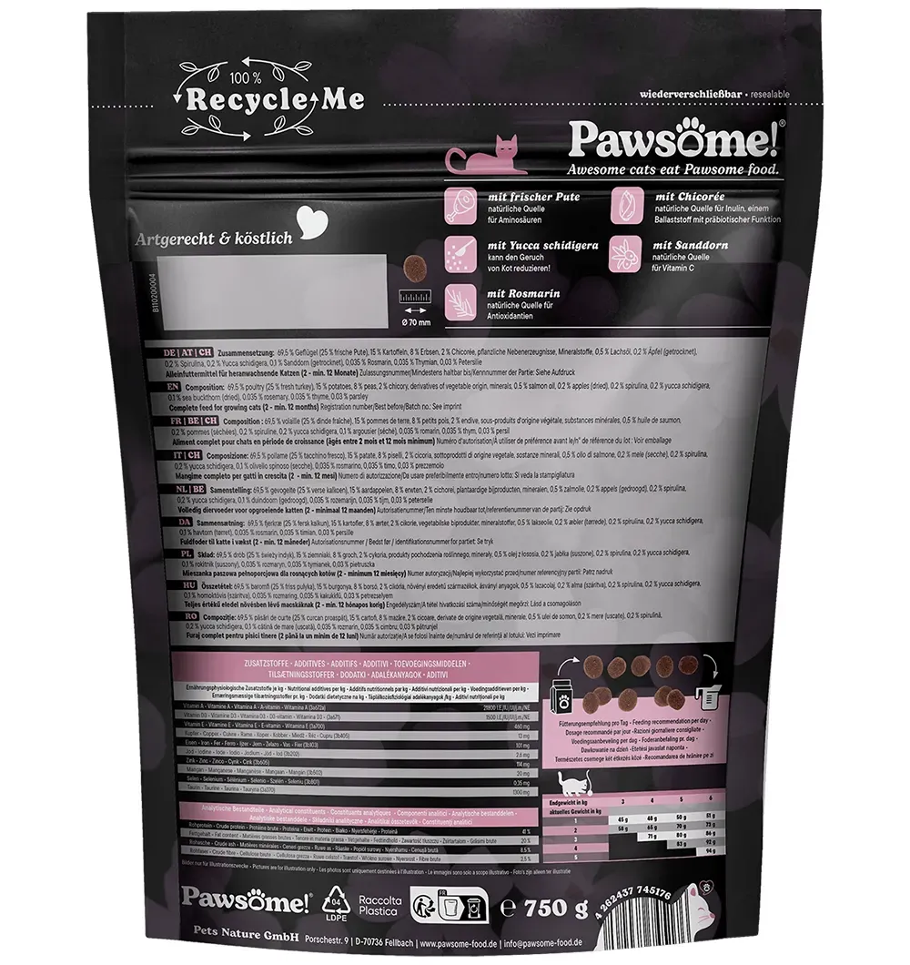 Pawsome! Fresh & Dry kuivtoit kassipojale, kalkunilihaga, teraviljavaba