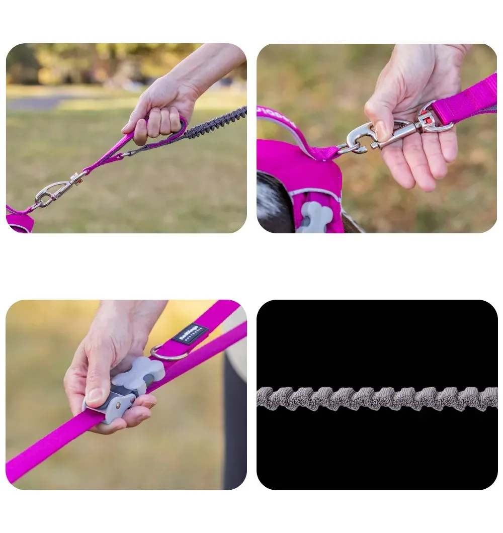 Red Dingo Running SuperLead on koera multifunktsionaalne jalutusrihm, mida saab kasutada mitmel viisil. Jalutusrihmal on elastne veniv “benji-kummist” vaheosa, mis vähendab oluliselt tirimise ja tõmbamise pinget nii koerale kui ka omanikule.