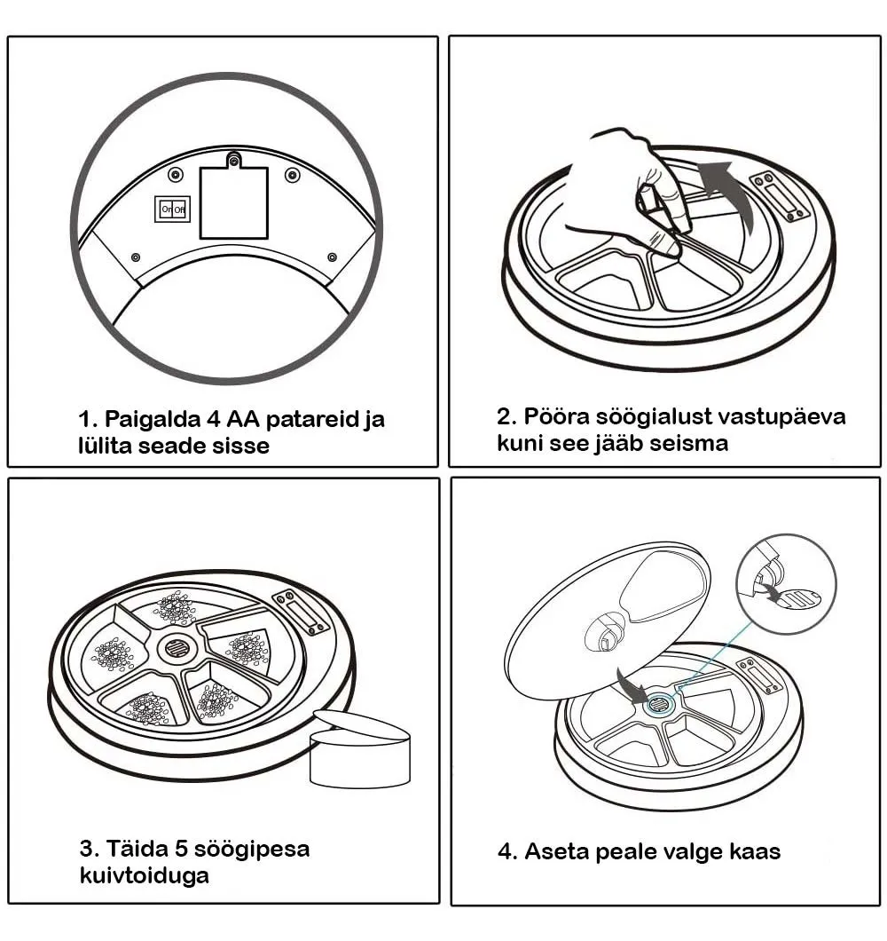 Сначала вам нужно познакомить своего питомца с автоматической кормушкой и приучить его к ней.