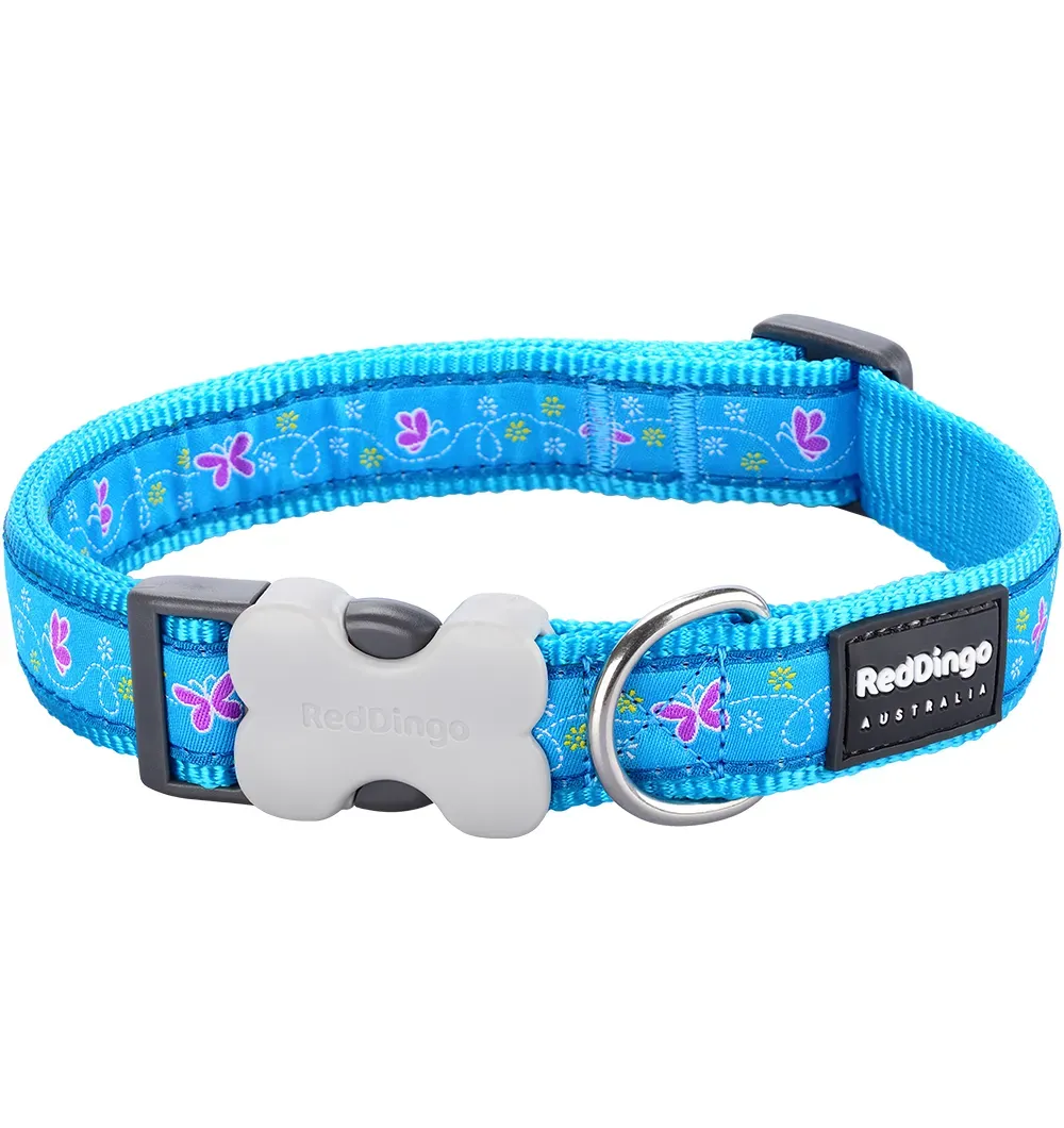 Ошейник для собак с дизайнерским принтом Butterfly Turquoise (Red Dingo)