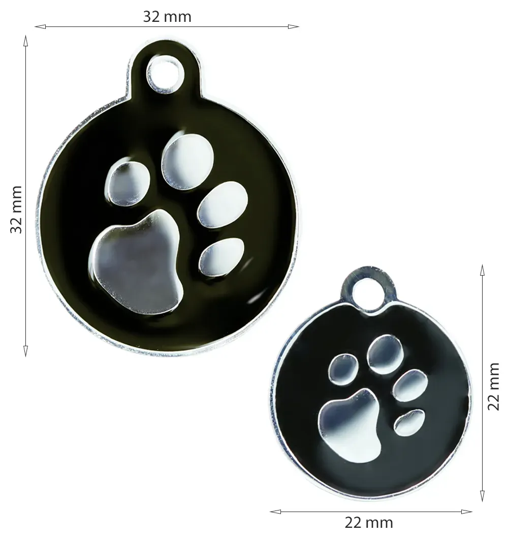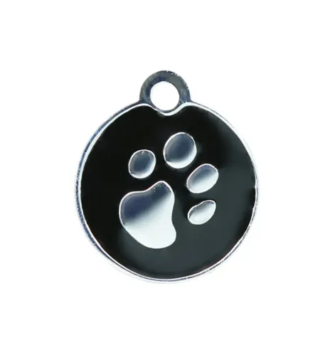 Кулон с гравировкой для собаки, круглый с отпечатком лапы, черный / серебристый (Elegance)