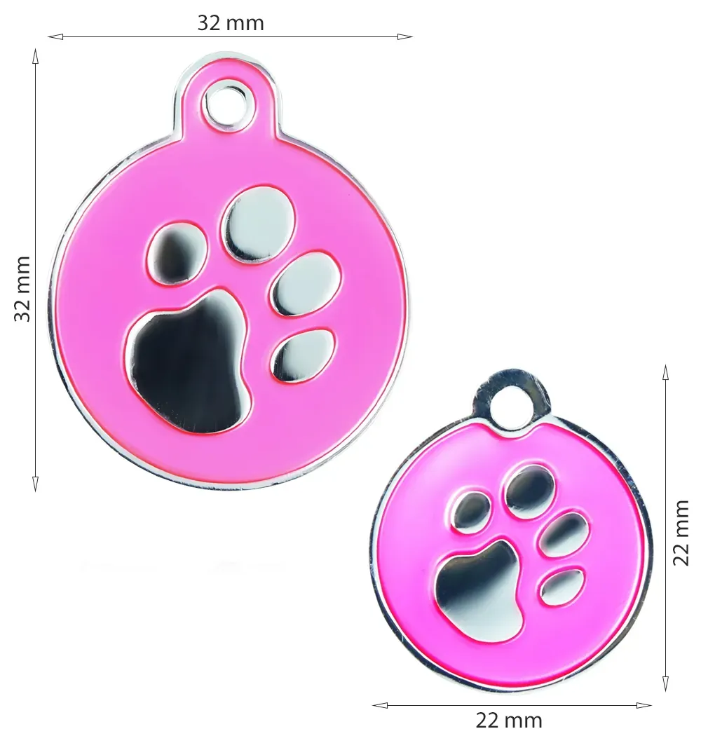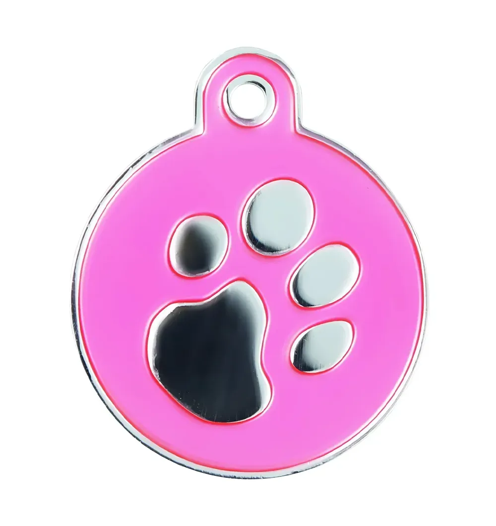 Кулон с гравировкой для собаки, круглый с отпечатком лапы, розовый / серебристый (Elegance)