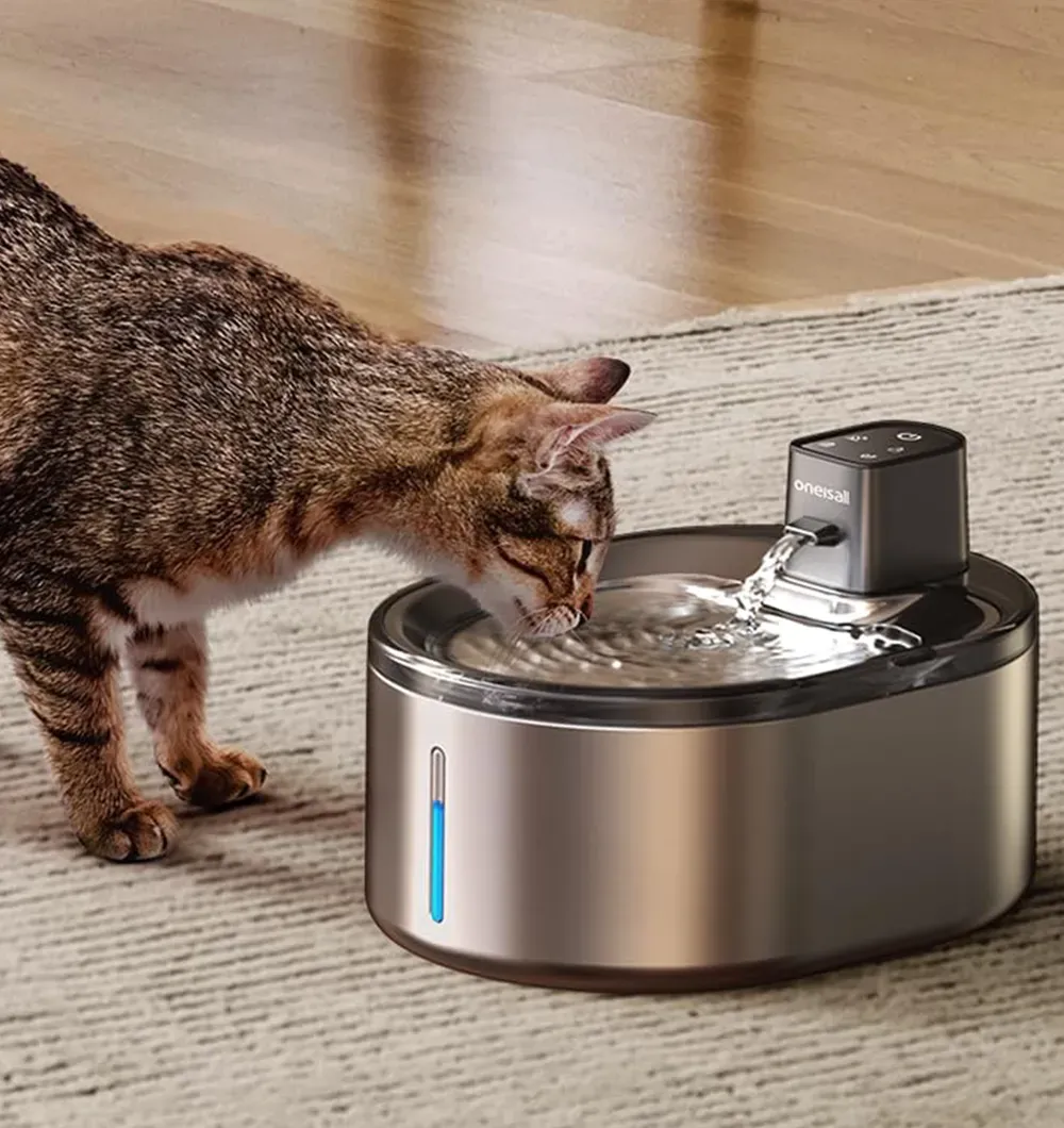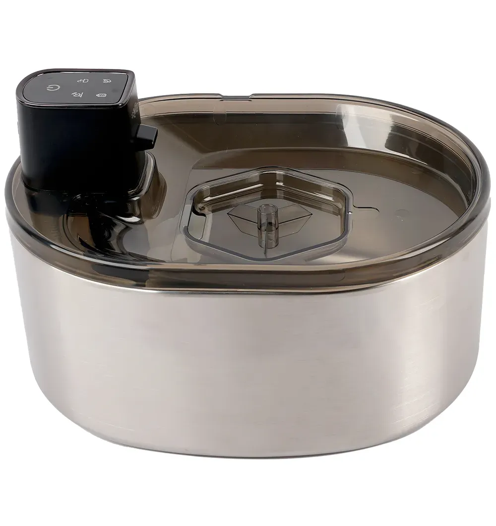 Фонтан изготовлен из нержавеющей стали марки 304, безопасной для контакта с пищевыми продуктами, – это прочный и надёжный материал. Нержавеющую сталь легко очищать, её можно мыть в посудомоечной машине, она менее подвержена размножению бактерий и помогает сохранять воду чистой, чтобы ваш питомец всегда пил качественную и полезную воду.