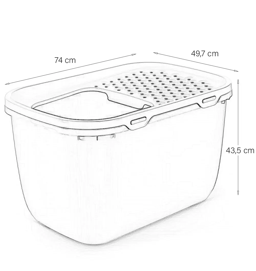 Самая важная деталь в песочнице Hop In Giant - перфорированная, слегка наклоненная внутрь крышка. Когда кошка выходит из домика по крышке с маленькими oтверстиями, частицы наполнителя падают обратно в лоток через отверстия. Так территория вокруг песочницы остается чистой.