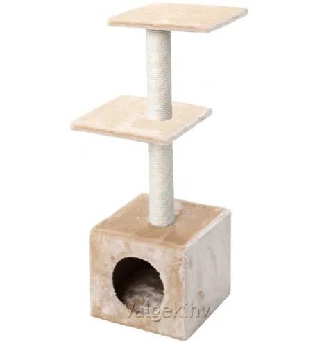 Когтеточка-столбик напольная, с двумя лежанками и домиком-спальным местом.