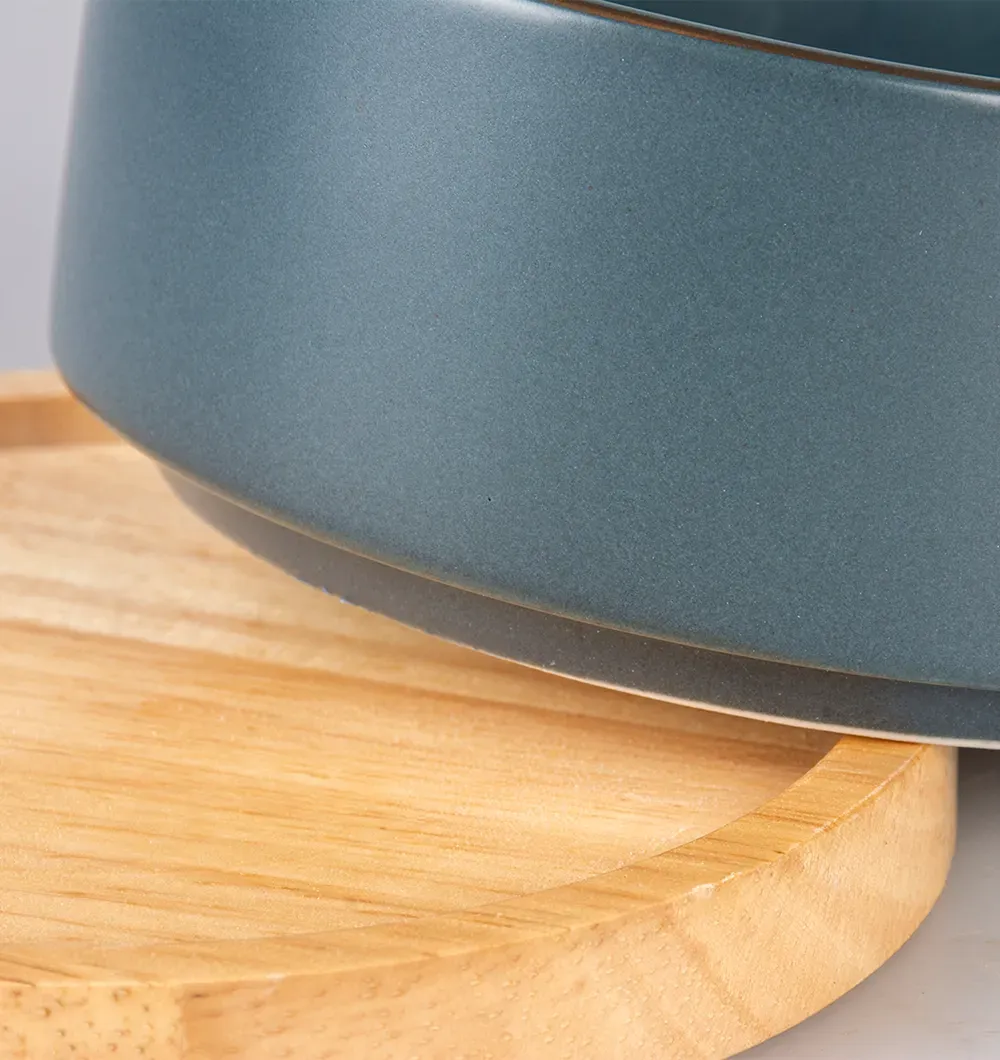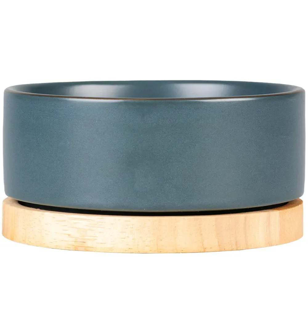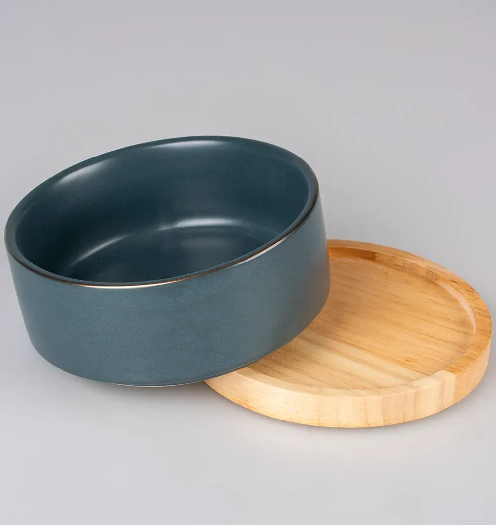 Благодаря высококачественной отделке глазурью миска водостойкая, легко чистится и пригодна для мытья в посудомоечной машине. Миска имеет деревянное основание.