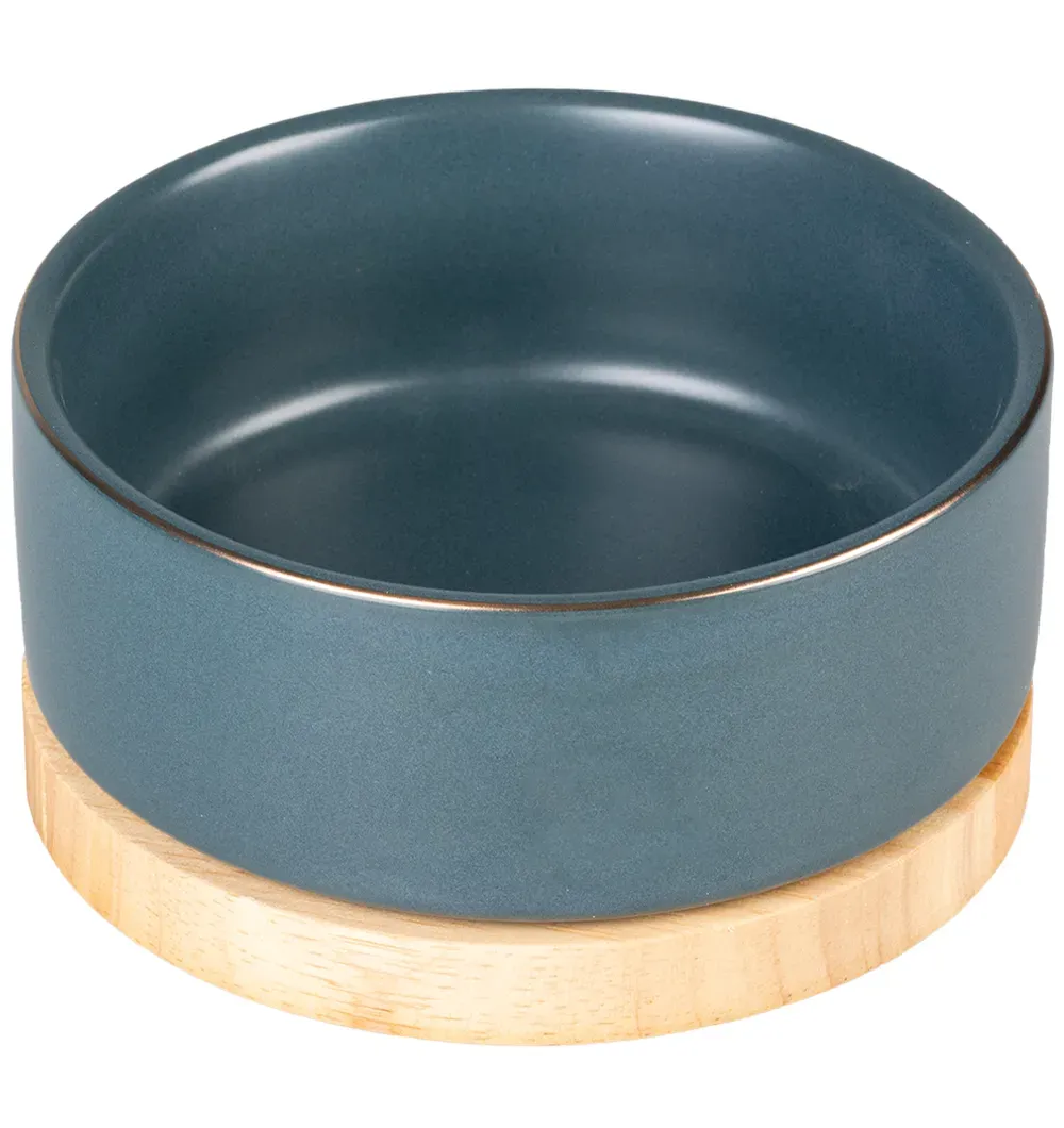 Миска керамическая на деревянной основе, синяя, Stone Timber (Duvoplus)