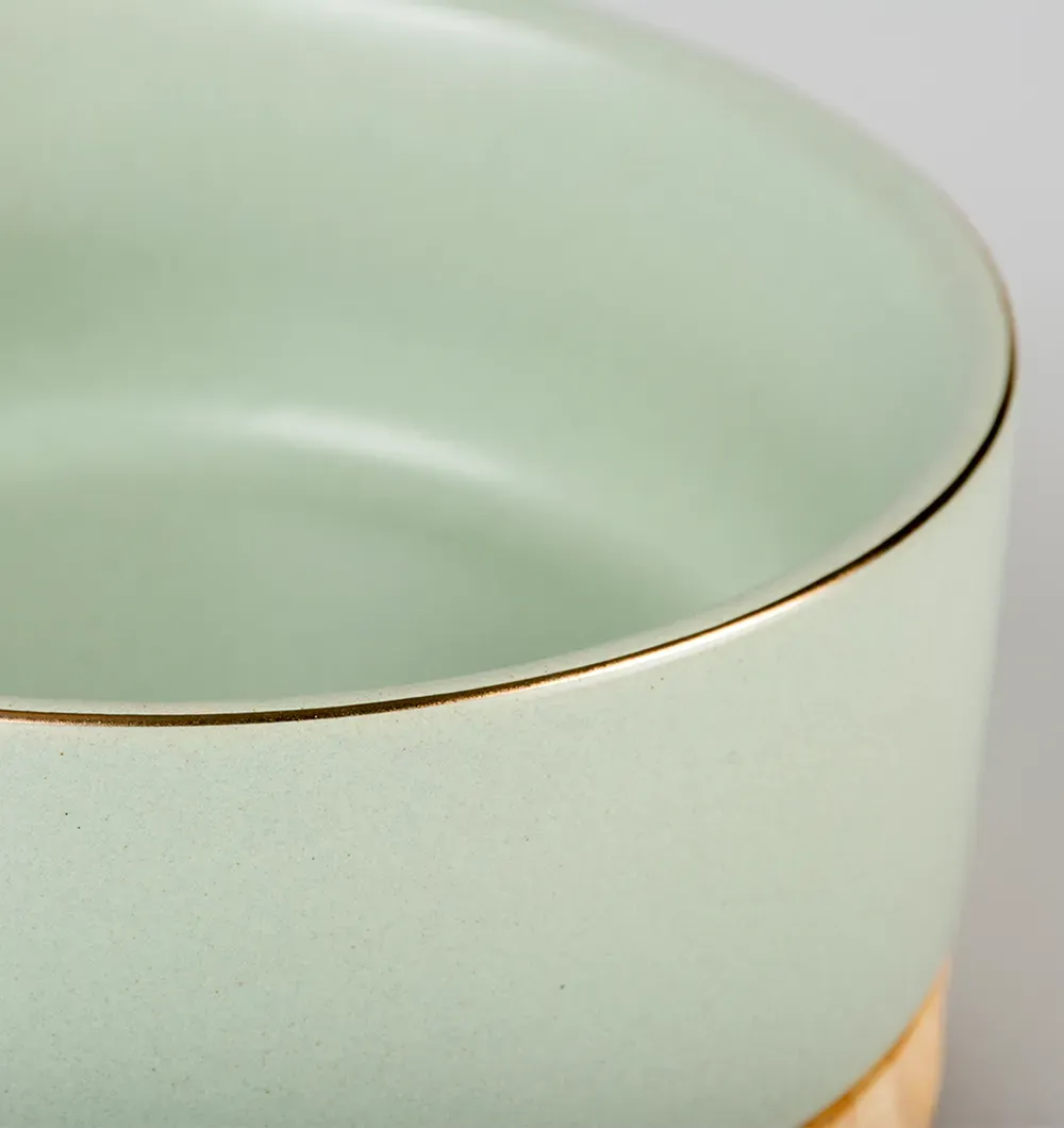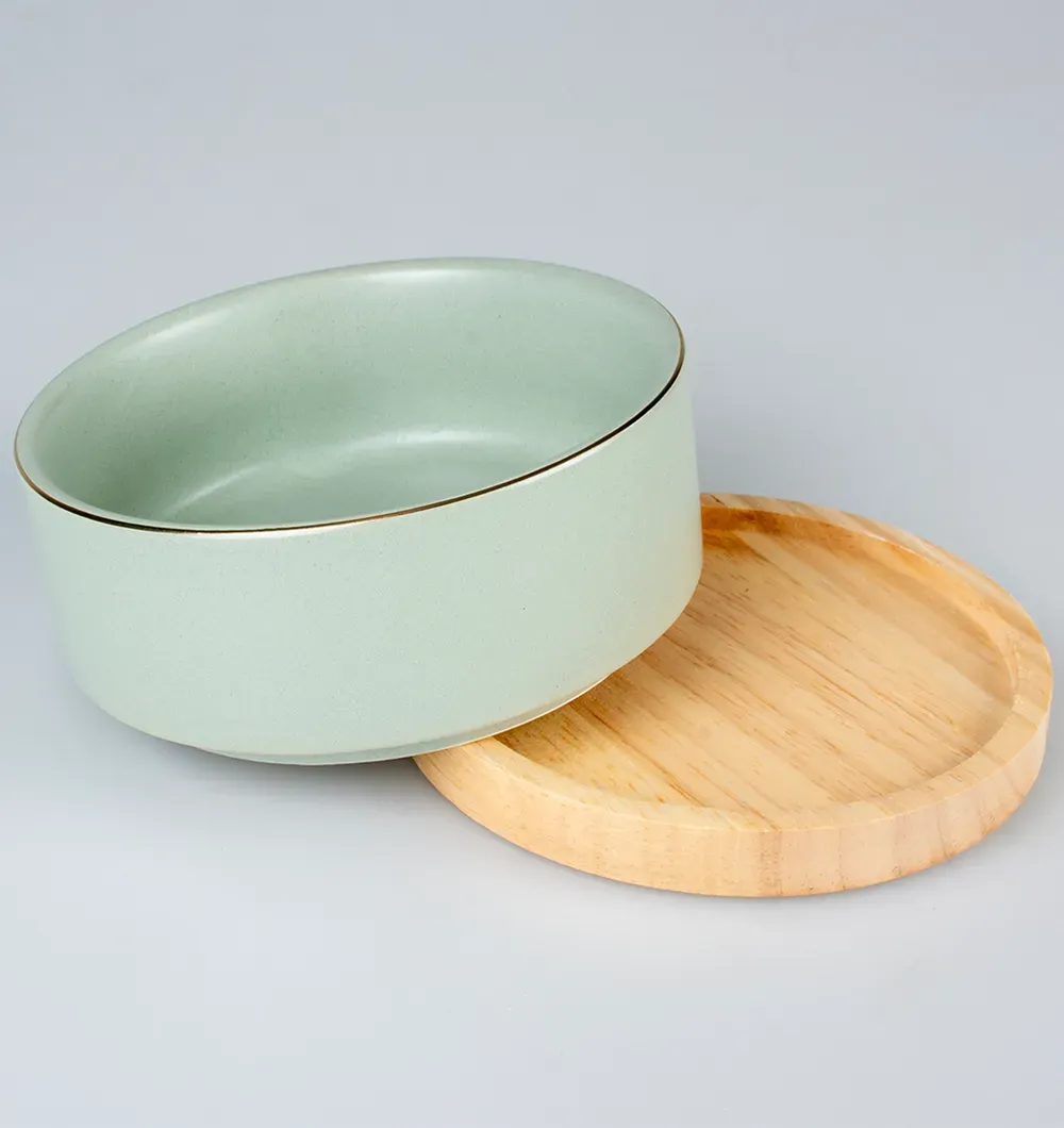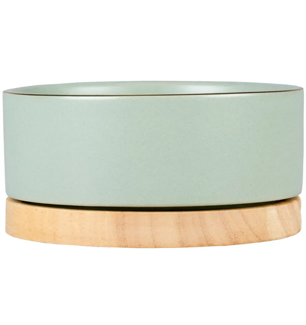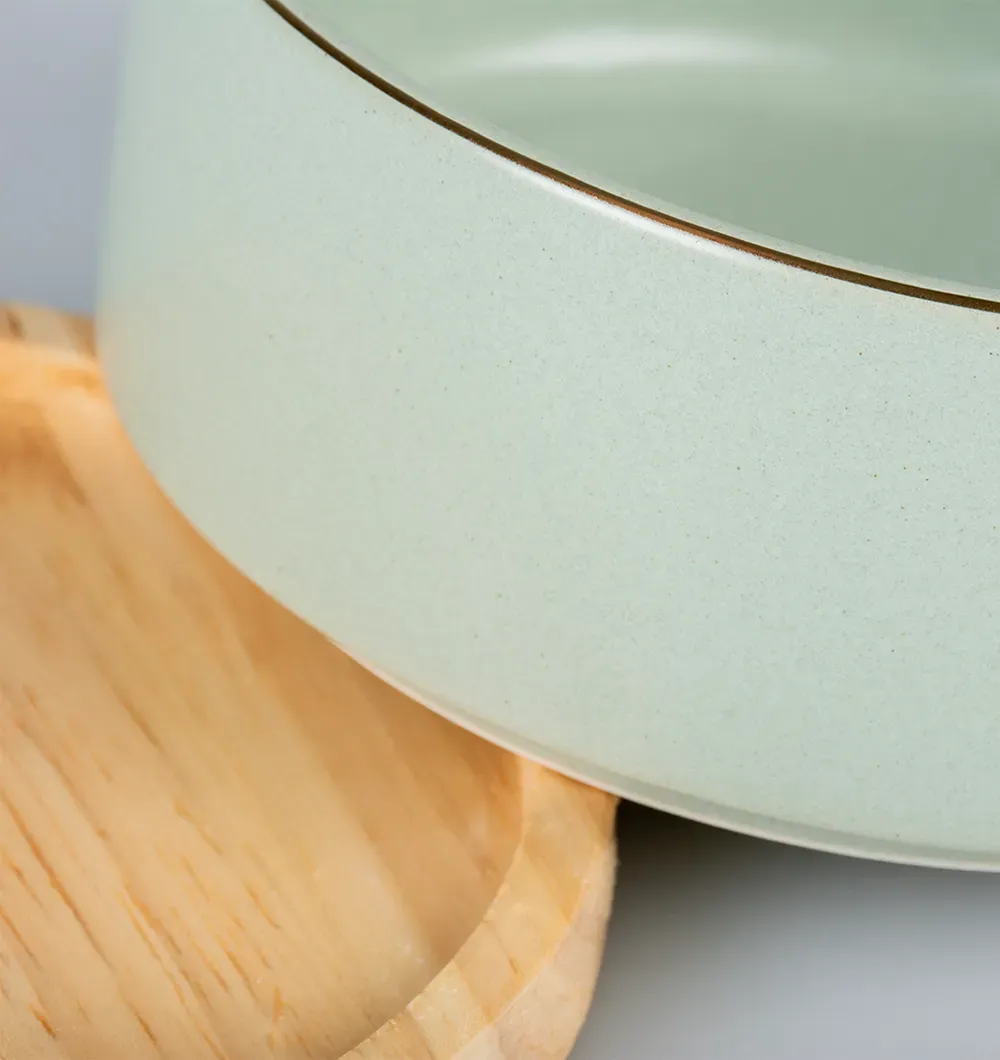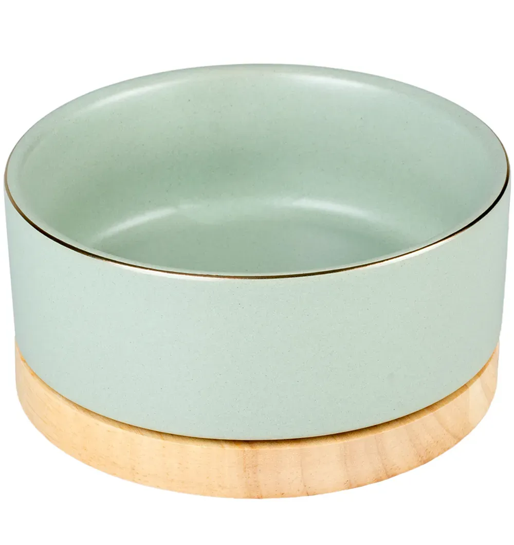 Благодаря высококачественной отделке глазурью миска водостойкая, легко чистится и пригодна для мытья в посудомоечной машине. Миска имеет деревянное основание.