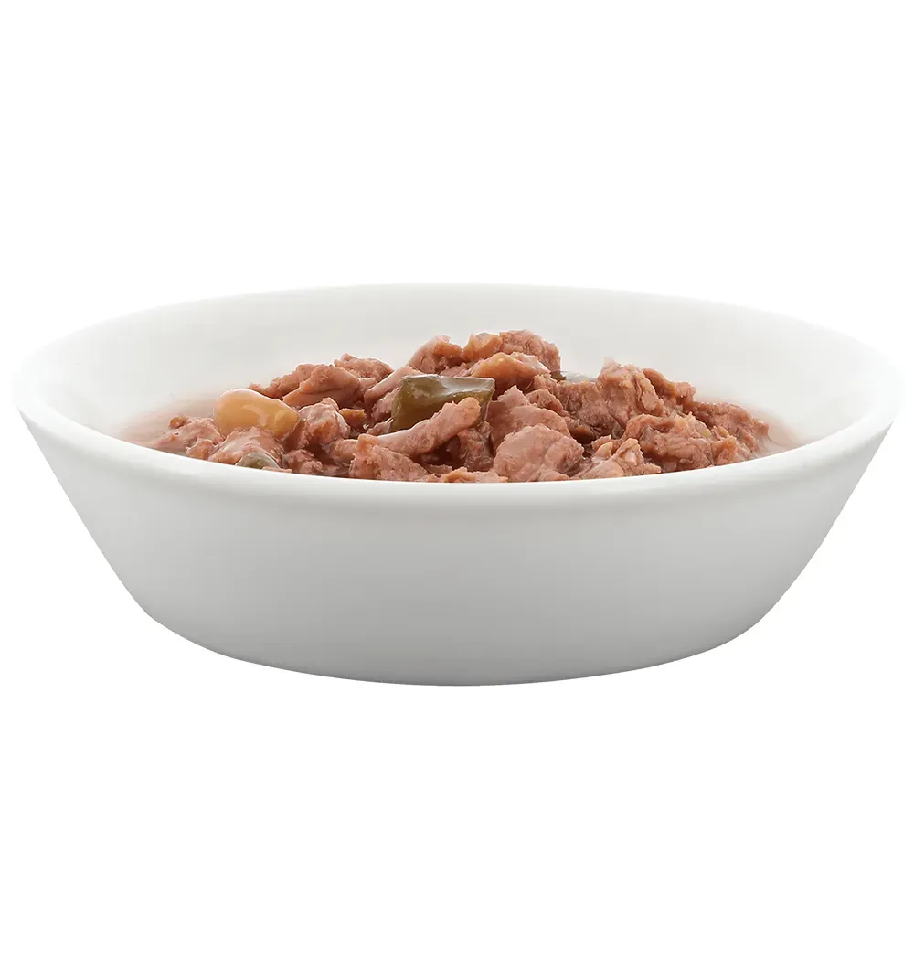 - 88% ингредиентов животного происхождения, из них кусочки тунца и курицы 34,5%.