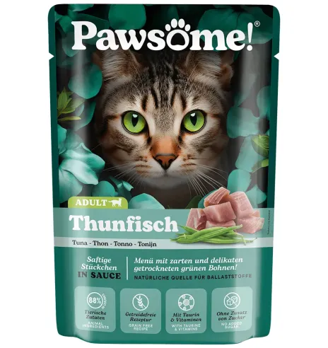Консервированный беззерновой корм Pawsome! для кошек в пакетике кусочки тунца в соусе