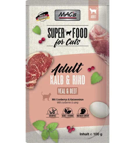 MAC`s консервированный корм в пакетиках для кошек ТЕЛЯТИНА И ГОВЯДИНА