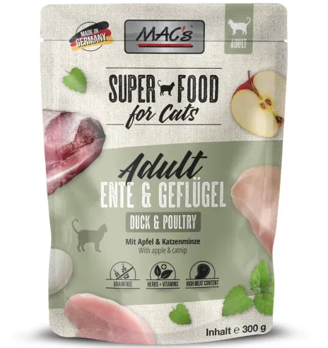 MAC`s консервированный корм в пакетиках для кошек УТКА И ДОМАШНЯЯ ПТИЦА (97%) (Superfood Cat Duck & Poultry)