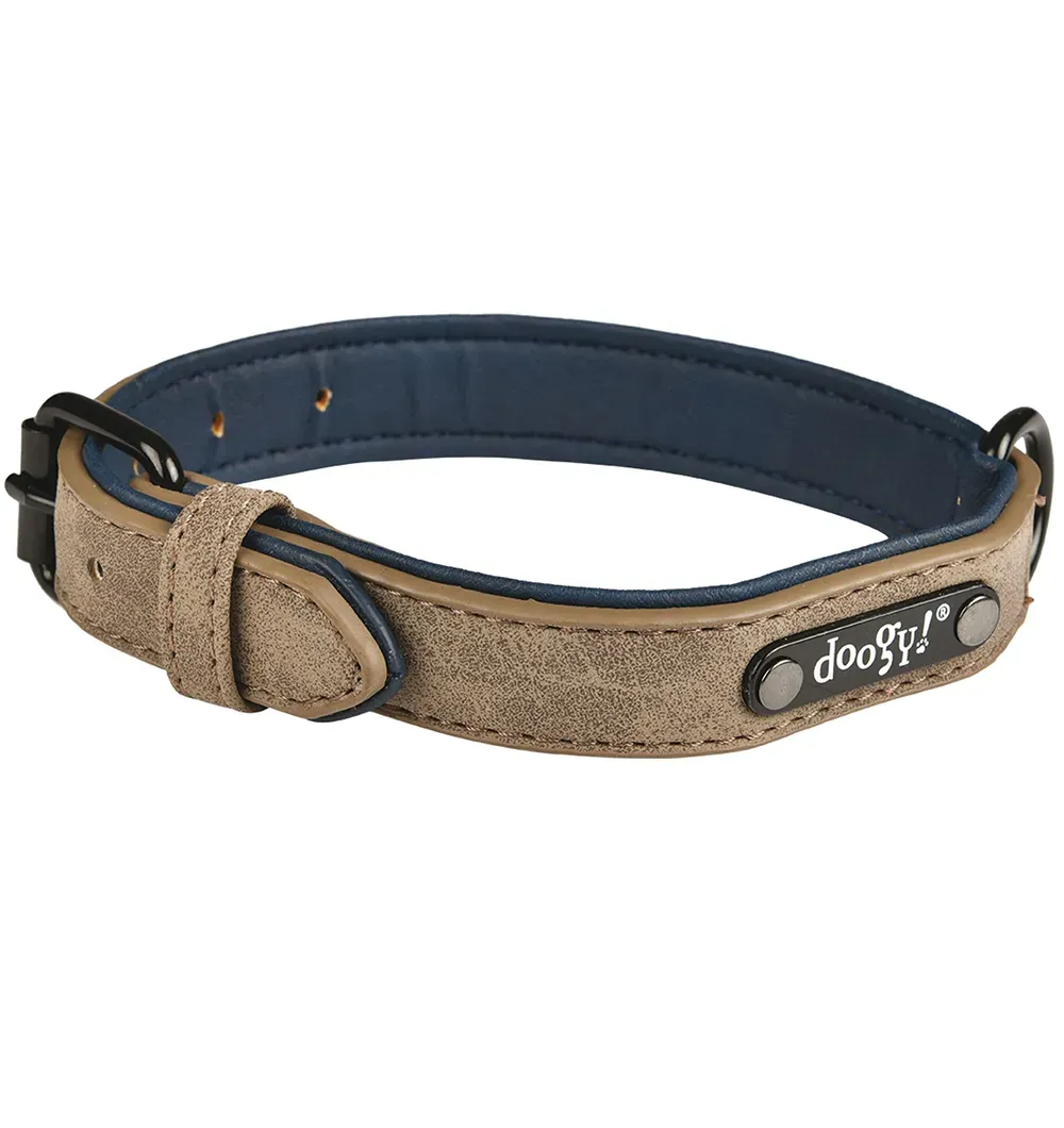 Ошейник для собак из искусственной кожи, с черной пряжкой, коричневый Simili Sweet (Doogy)