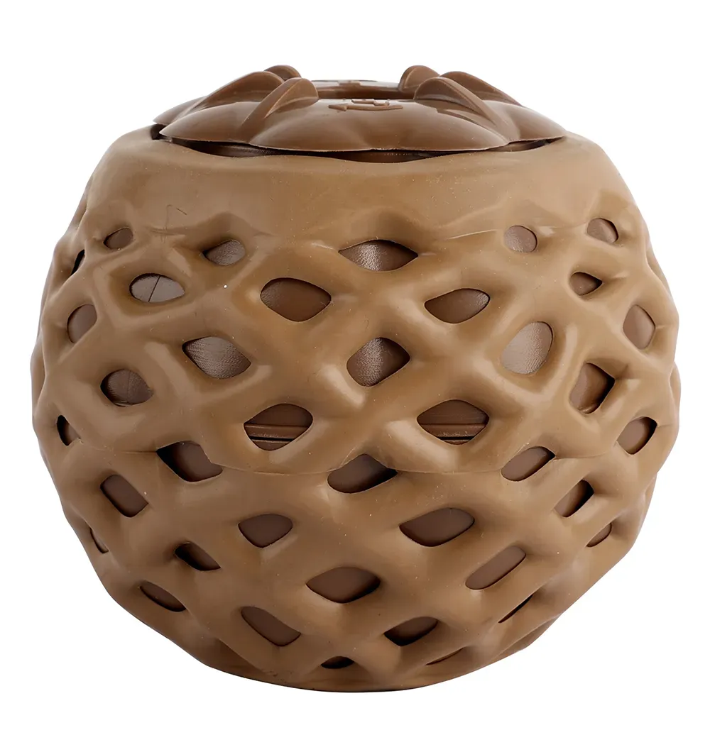 Мячик для лакомства имеет регулируемый размер отверстий, позволяющий выбрать уровень сложности игры, подходящий для собаки.