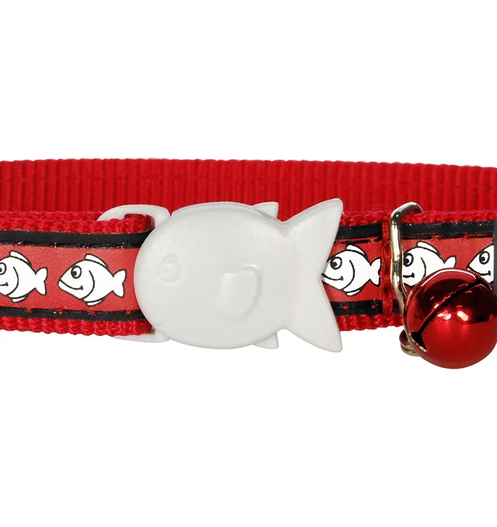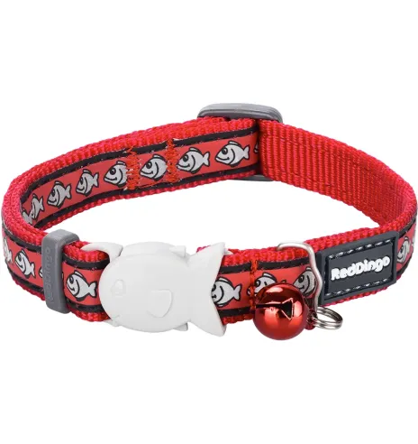 - Ошейник для кошки от Red Dingo оснащен запатентованной пряжкой-застёжкой Fish Clip в форме рыбы, специальная конструкция которого обеспечивает безопасность кошки в случае, если ошейник за что-нибудь зацепится. Пряжка автоматически открывается под весом 2 кг и кошка освобождается от ошейника.