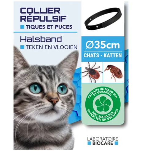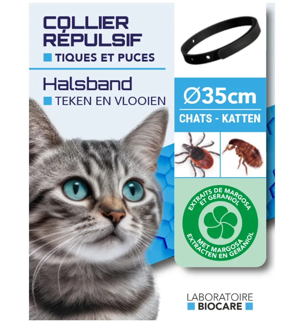 Ошейник от клещей для кошек 35 см, натуральный противопаразитарный препарат (Laboratoire Biocare)