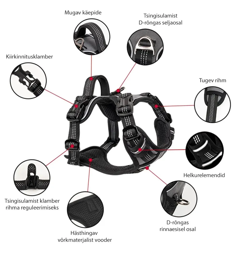 Koera traksid tirimisvastased kahesuunalise kinnitusega