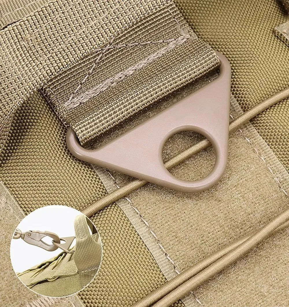 - Система MOLLE (Modular Lightweight Load-Carrying Equipment) позволяет крепить различные подсумки и аксессуары, облегчая индивидуальную настройку снаряжения под собаку.