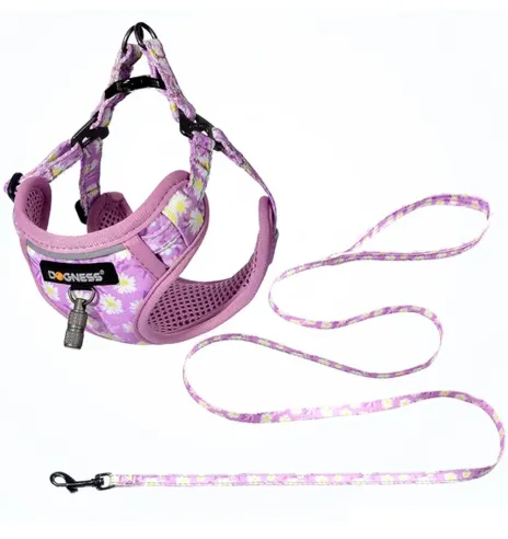 Текстильный поводок и шлейка для маленьких собак или кошек, голубой с цветами Forget Me...