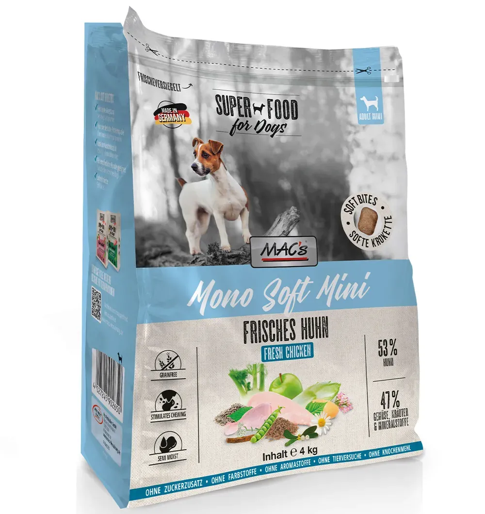 Корм для собак MAC's Mono SOFT Mini со свежей курицей, полувлажный, беззерновой (Semi-Moist)