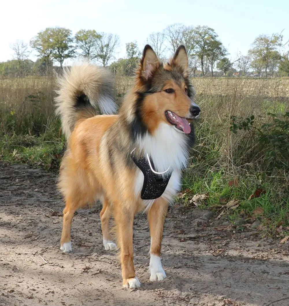 - Чтобы шерсть и кожа собаки не натирались, лямки и пряжки покрыты мягким, дышащим материалом.
