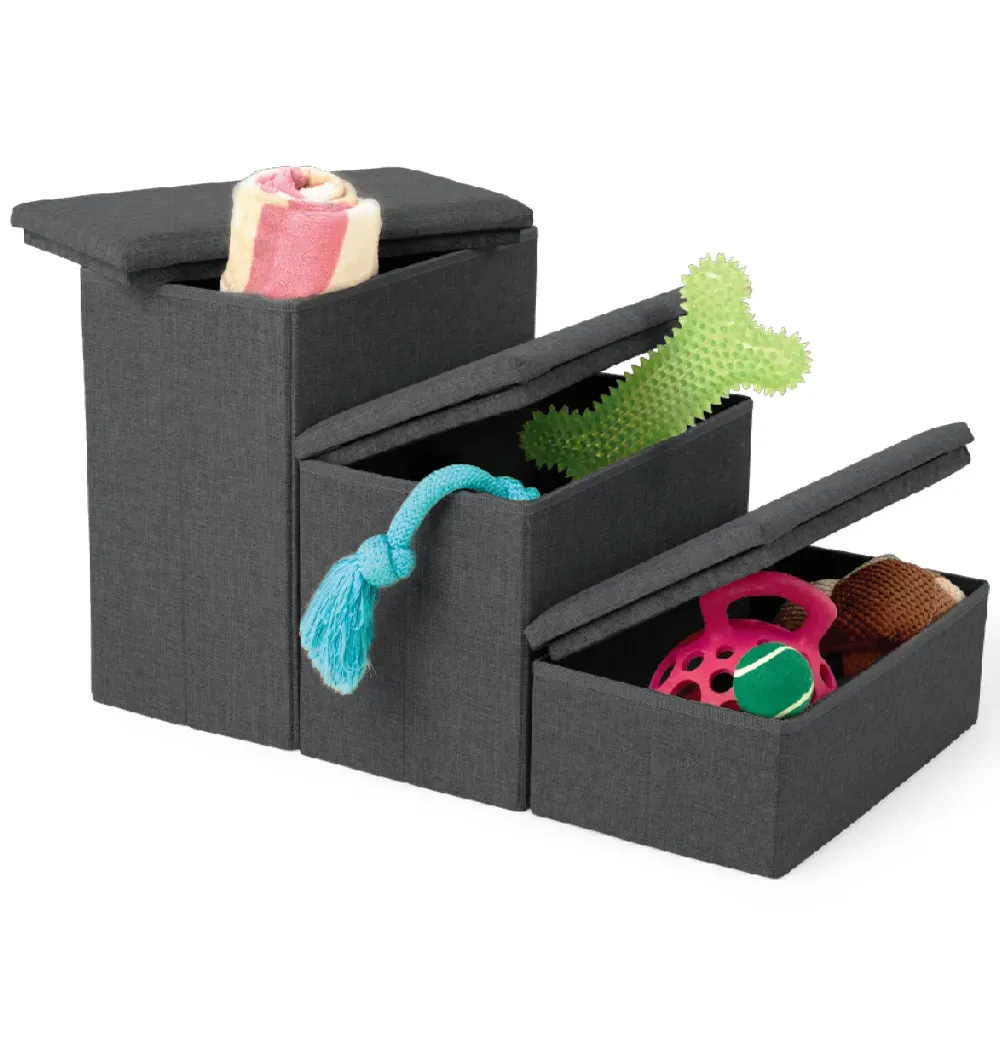 - Все ступени поднимаются. Внутри каждой ступени есть место для хранения, куда можно положить, например, игрушки собаки.