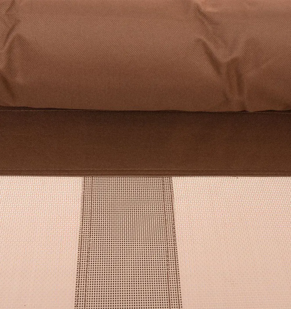 Воздухопроницаемый сетчатый материал позволяет влаге лучше испаряться и тем самым оказывает освежающий эффект. Сетчатый материал светло-бежевого цвета, чтобы спальная поверхность не сильно нагревалась на солнце.