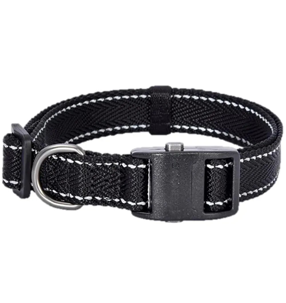 Kaelarihm koerale, nailonrihm helkurniitidega, must (Dogness Herringbone Webbing)