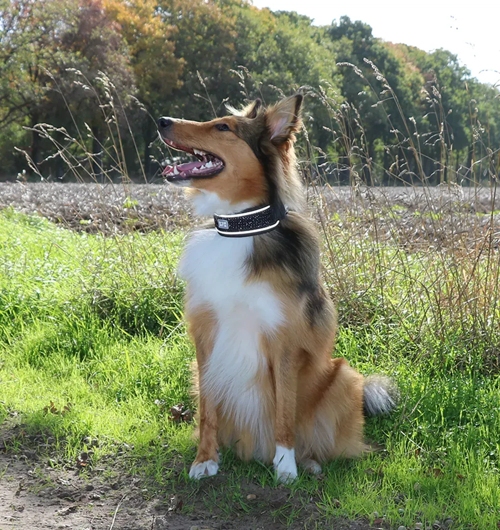 Mugav koera kaelarihm turvalise lukustusega. Kaelarihm on pehme ja lai, mis võimaldab tõmbamisest tuleneva surve jaotada ühtlaselt, kaitstes sealjuures koera õrna kaela võimalike vigastuste eest.