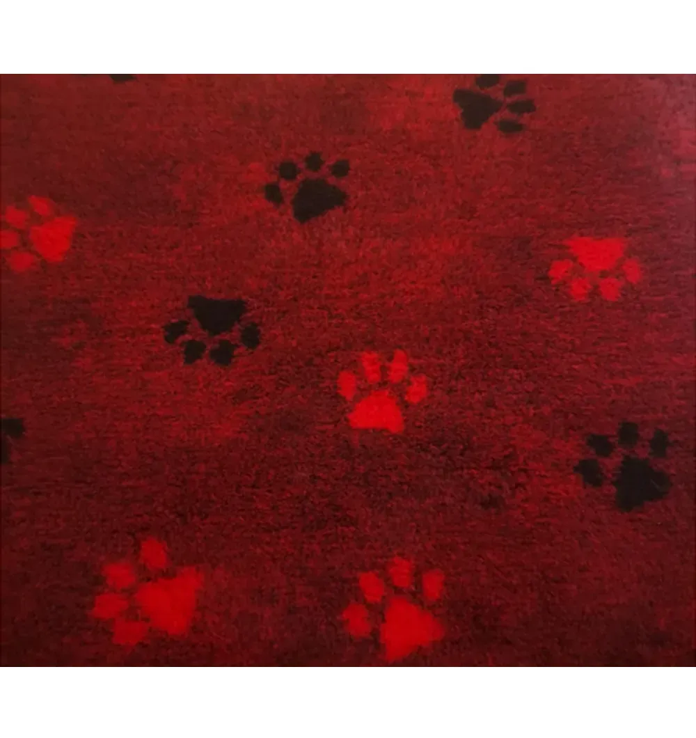 Vetbed Premium matt, eriti paks 30 mm, Inglise originaal, tumepunane väikeste punaste ja mustade käpajälgedega